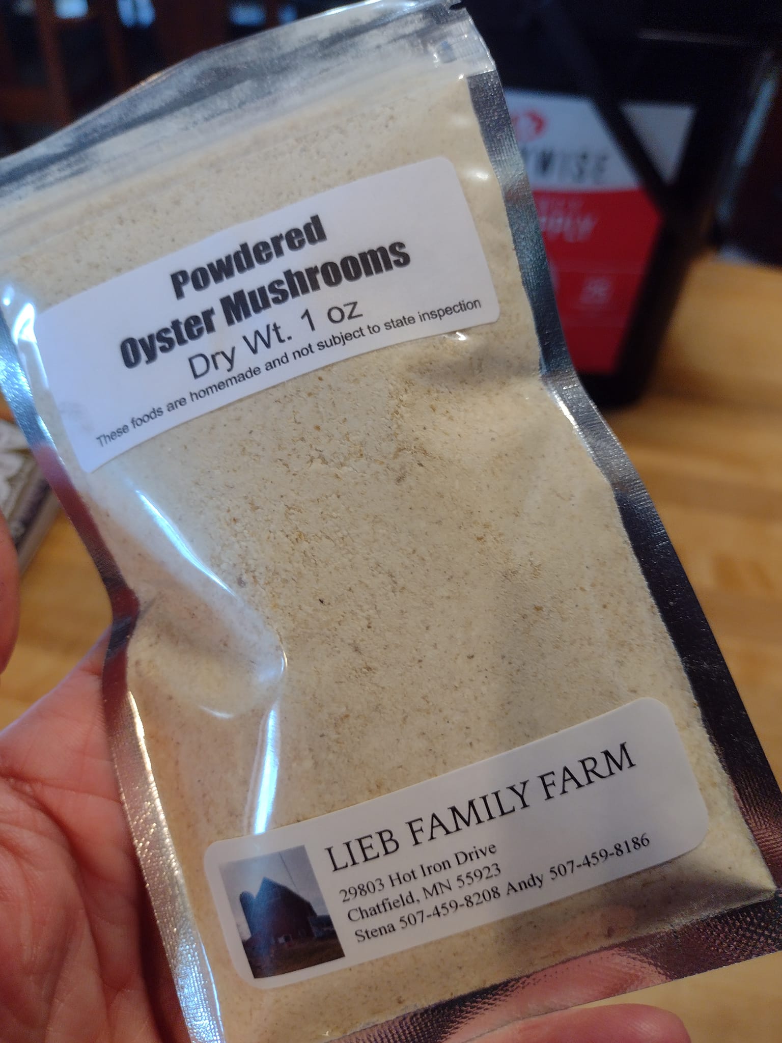 Mushrooms dehydrated and then ground to powder. Add them to any dish for the health benefits or to add earthy flavor to your dish.
